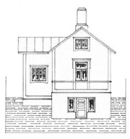 Bilden visar ritning av Anders Öström år 1919, fasad mot öster.