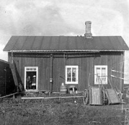Bilden visar fattighuset som låg söder om nuvarande korsningen Torggatan-Mariegatan.