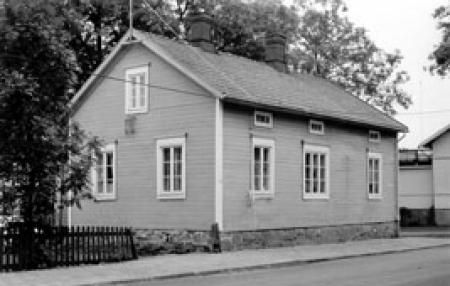 Huset byggdes år 1874 av smeden Anders Johan Blomberg och uthuset uppfördes följande år. Genom ett byte kom gården år 1876 i byggmästaren Karl August Berglunds och hans hustru Marias ägo och kallades i folkmun ”Berglunds hörnet”. I trädgården fanns enligt 1920 års brandförsäkring många och stora aplar. bilden visar bostadshuset (foto: Ålands museum).