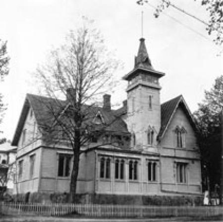 Alexandra Lundqvist (1865-1907), sjökaptensänka och syster till Erik Nylund från Lemland, köpte den obebyggda tomten på auktion i november 1892. Följande år ritade Lars Sonck ett ståtligt bostadshus i trä med elva rum, varav fyra med kakelugnar. De fem vindsrummen hyrdes sommartid ut åt badgäster. Huset hade ett litet torn med balustradförsedd veranda varifrån man kunde beundra utsikten över staden som bredde ut sig åt sydost. Norr om tomten fanns nämligen ännu ingen bebyggelse. Säkert tävlade byggnaden också en aning med den likaledes tornförsedda villan Marielund på andra sidan Esplanaden... År 1909 köptes gården av Otto Wilhelm och Helena Johanna Drake. Otto Wilhelm Drake var lyceets rektor under åren 1913-23. Han kallades ”Tapsken” av sina elever och tycks ha varit en rätt så sträng lärare. Om vintrarna brukade han stå i kartrummet och vakta för att få fast snöbollskastare. Paret Drake sålde gården år 1918 till arrendatorn på Grelsby gård Gösta Lindeman och hans hustru Hilda. De gav Anders Öström i uppdrag att planera en ombyggnad och fasadändring av bostadshuset samma år.