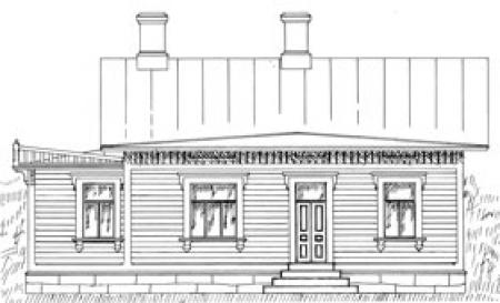 På bilden av bostadshuset syns tillbyggnaden till vänster.